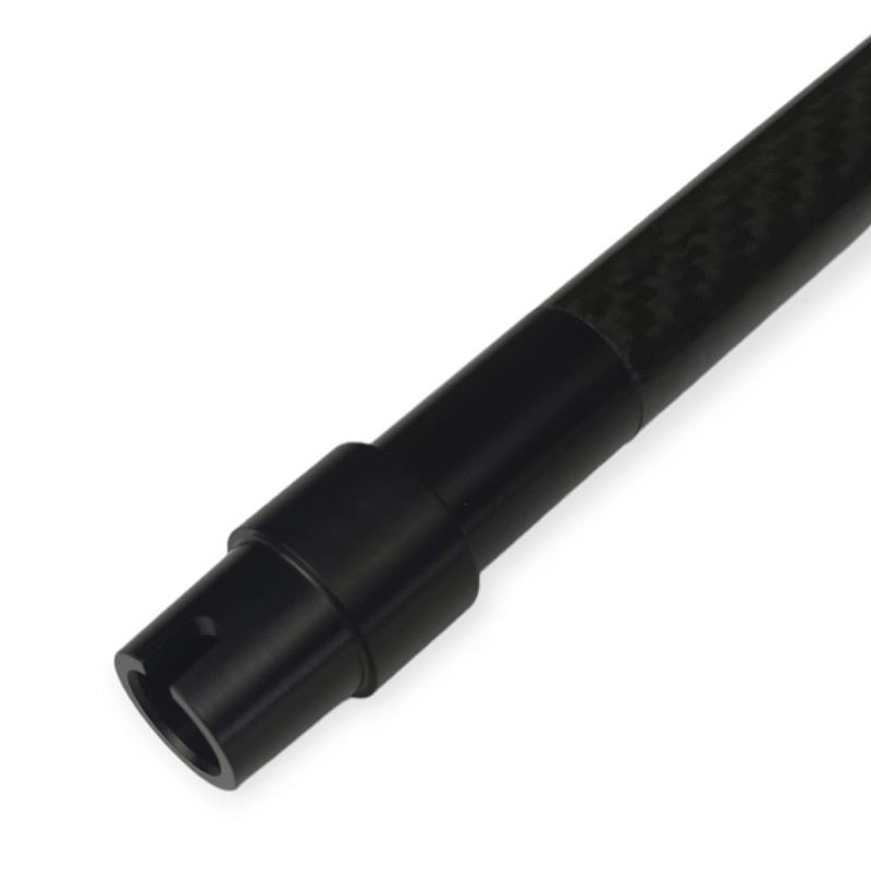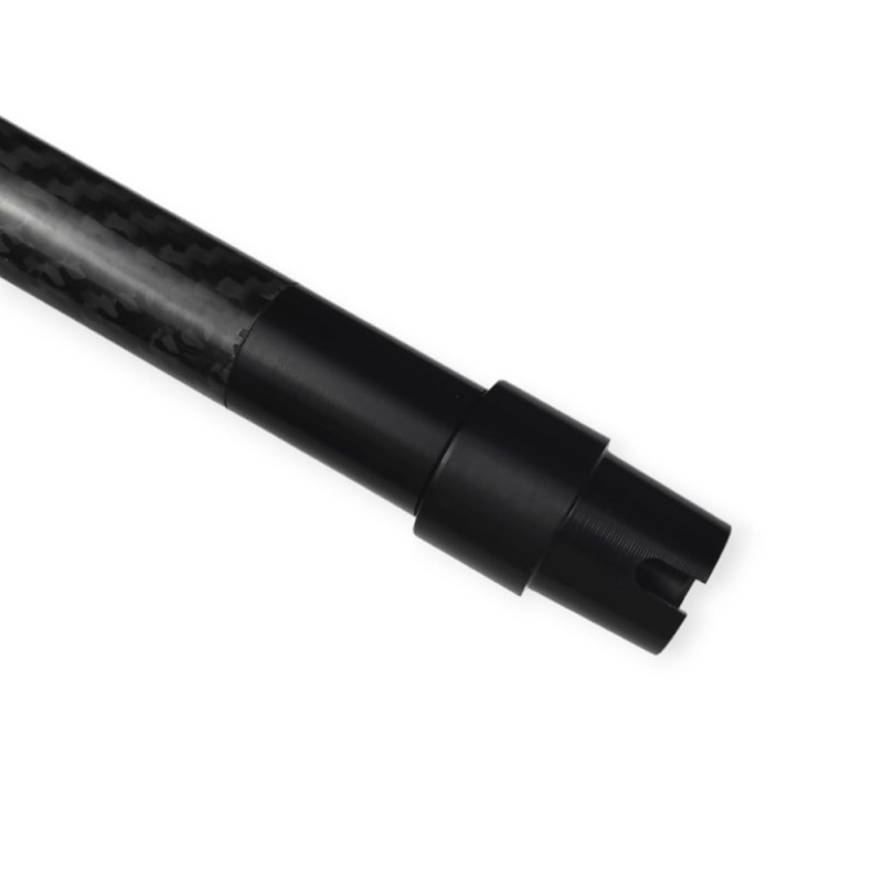 Outer barrel de 9 pulgadas de longitud para M4 Next Gen, fabricado en aluminio y anodizado en color negro con el centro de fibra de carbono by Fijo Custom